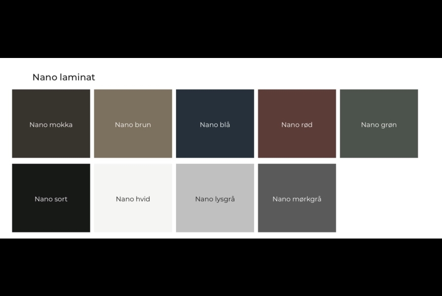 Til sidste skal du vælge hvilken laminatfarve du vil have bordpladen med, du kan se eksempler på farverne i billederne.