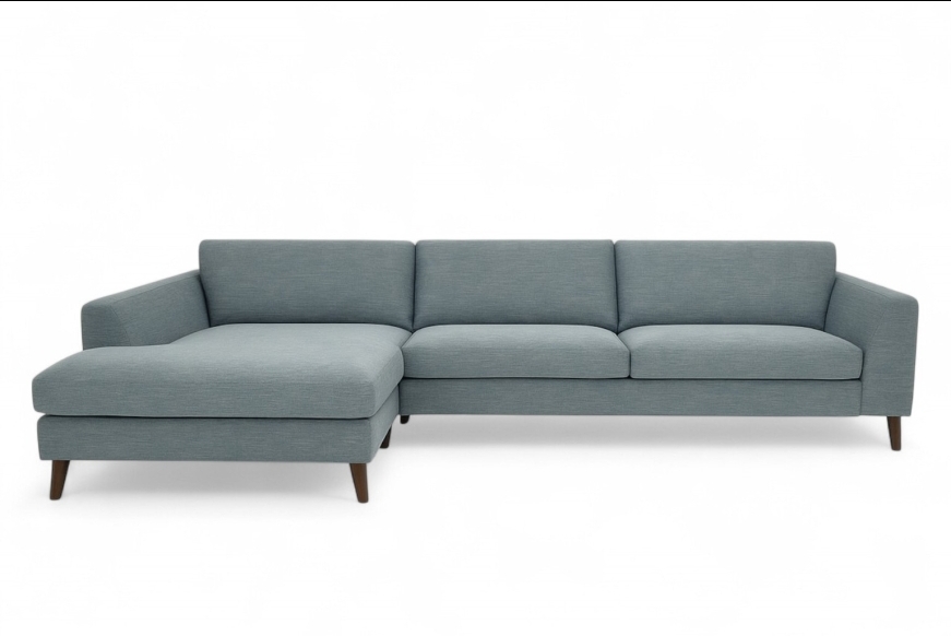 Elegant byggesystem. Sofa med kæmpe XL-chaiselong. Fås i mange typer stof og læder,