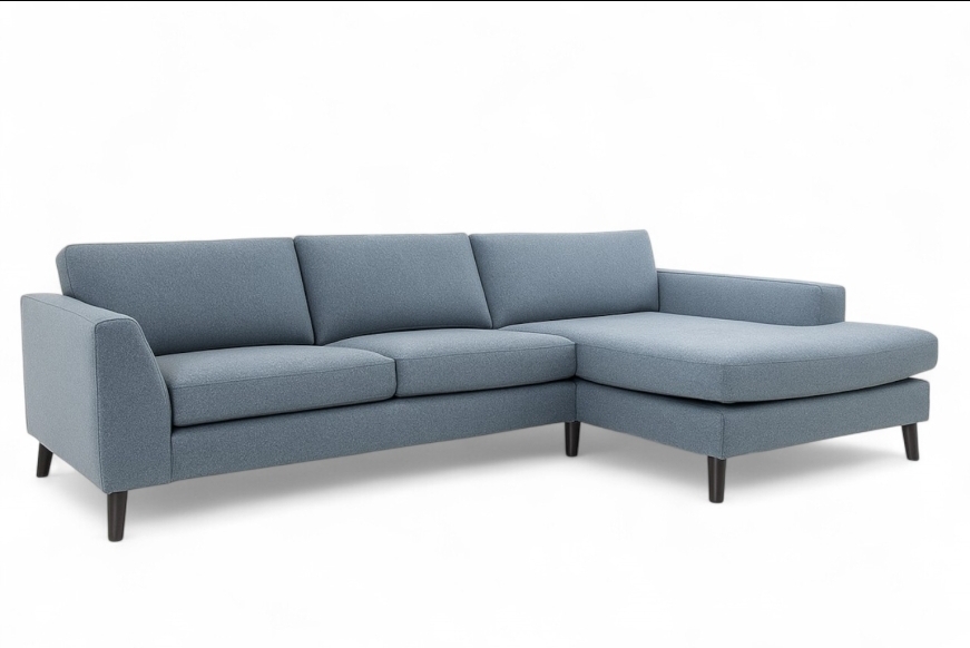 Elegant byggesystem. Sofa med kæmpe XL-chaiselong. Fås i mange typer stof og læder, samt i flere størrelser.