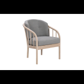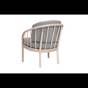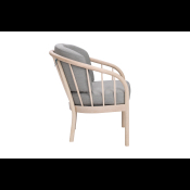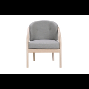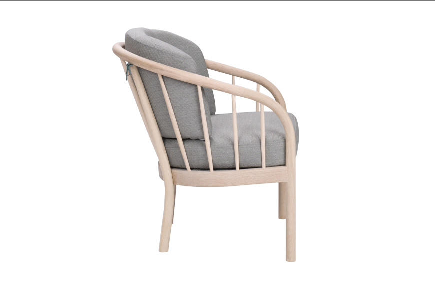 På billedet ses en Maria stol i ubehandlet egetræ og med lysegråt Misha uld betræk.