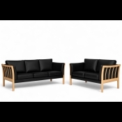 På billedet ses et 3 + 2 prs. Dorte sofasæt, med læder overalt og med bøge lak stel. Fås også bøg ubh. eller ege gavle mod tillæg.