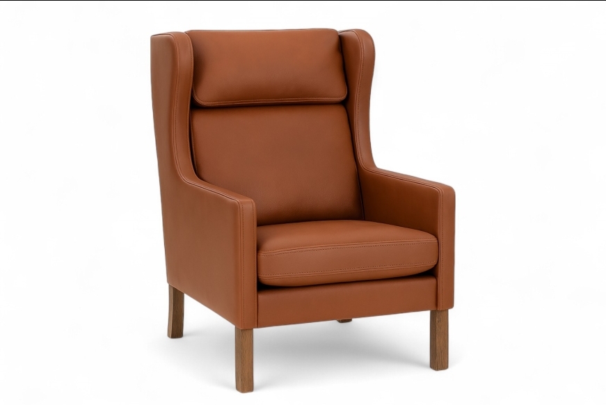 Dansk klassikere øreklap stol . Monteret med luksus læder overalt.