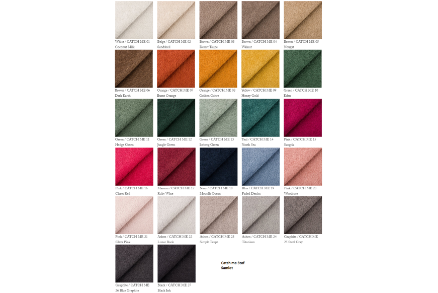 Stof gr. 1: Happy, Samoa, Raquel, Vogue, Posso, Ontario, Leo, Luet, Aragon, Storm.