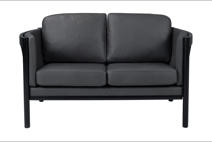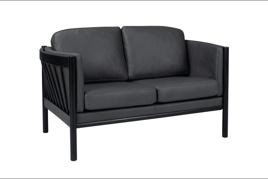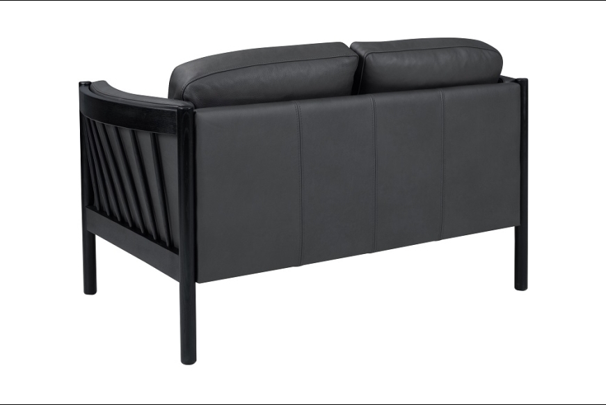 På billedet ses en 2 pers. Julie sofa, lækker læder overalt, og med sort egestel.