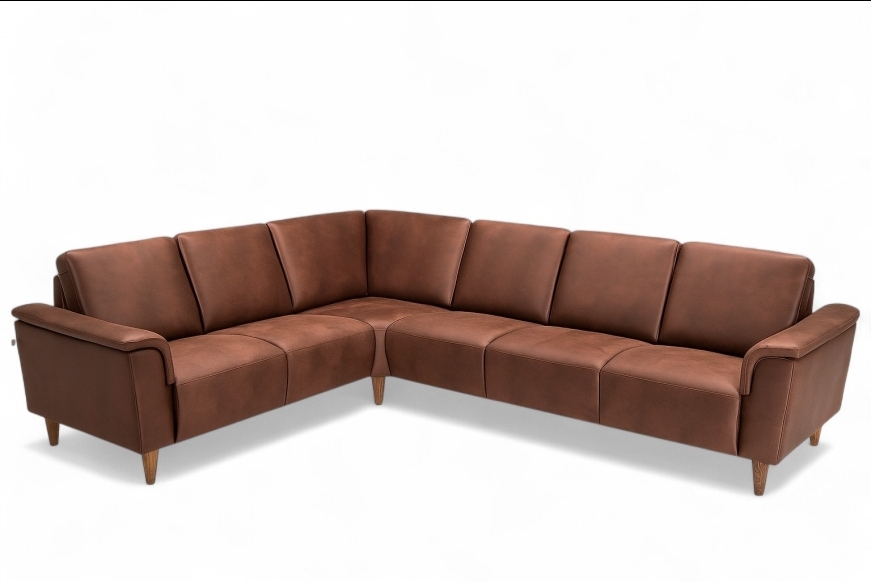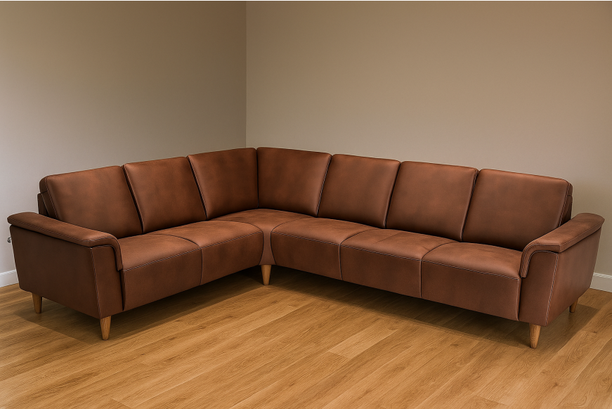 6 pers. hjørnesofa i stof. Fås også i læder.