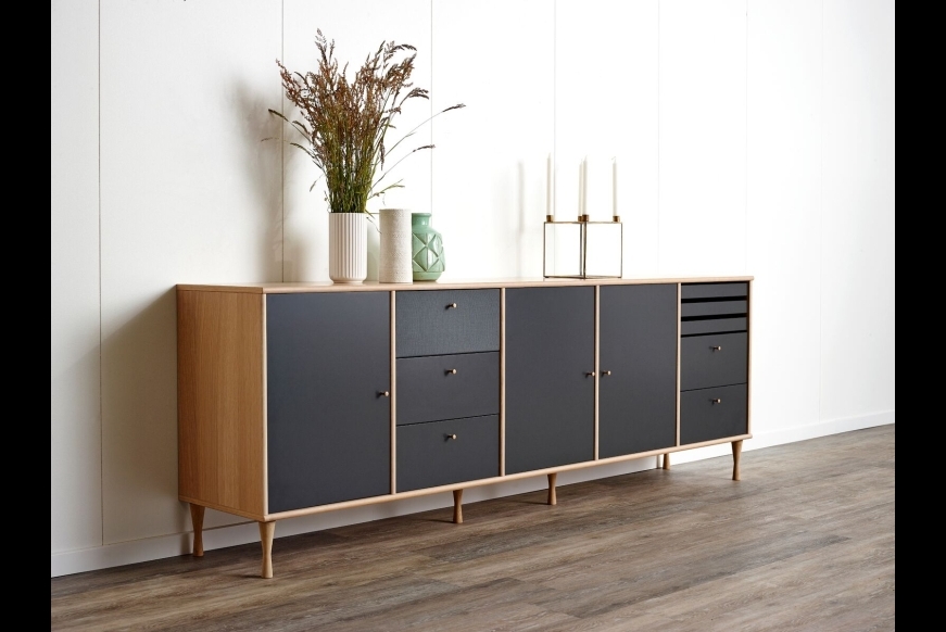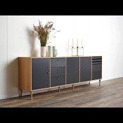 Mistral skænk på ben i eg. Fronter i antracit malet, som giver en spændende kombination